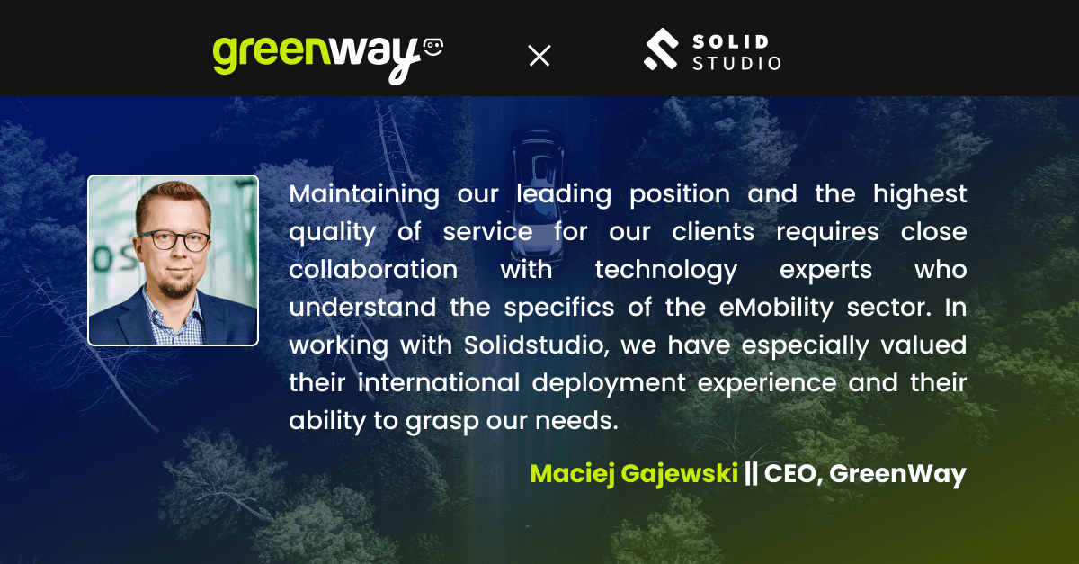 "Establishing a partnership with GreenWay Polska, whom we will actively support in managing a public EV-charging network, is especially significant for us. On the one hand, it is our largest venture to date in the domestic market. On the other, it allows us to draw on Solidstudio’s extensive experience to fuel local innovation and improve the efficiency of Poland’s electric-vehicle charging ecosystem" - adds Paweł Małkowiak, CEO at Solidstudio.